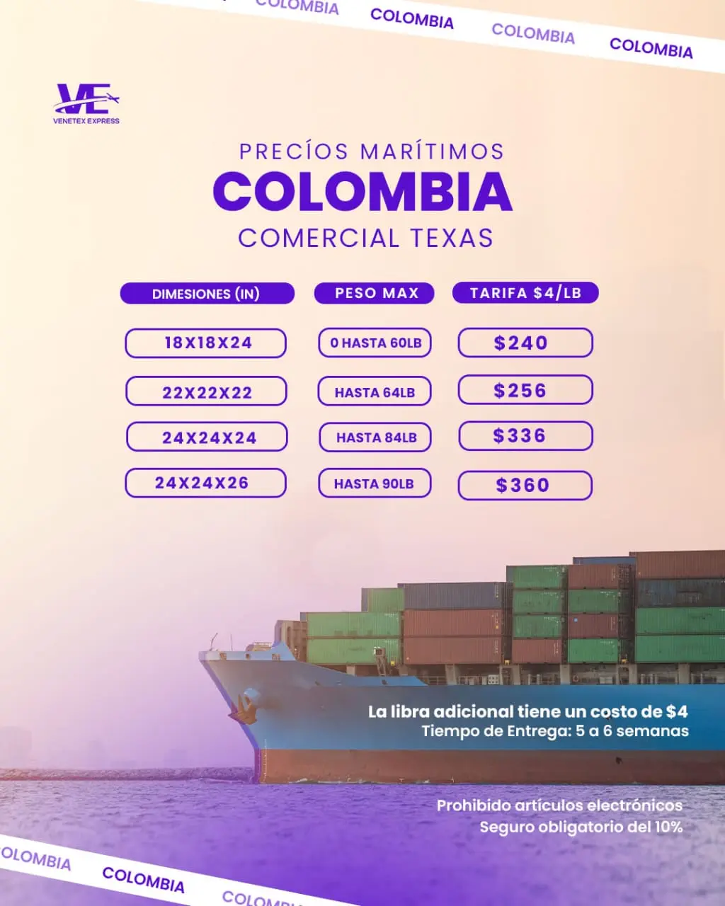 • Desde Dallas hacia Colombia: 3 días adicionales debido al tránsito terrestre interno hasta Miami.