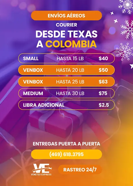 La aduana de Colombia puede verificar los envíos y reajustar el valor declarado si lo considera necesario. Venetex es ajeno a esta decisión y se informará oportunamente al remitente si ocurre.